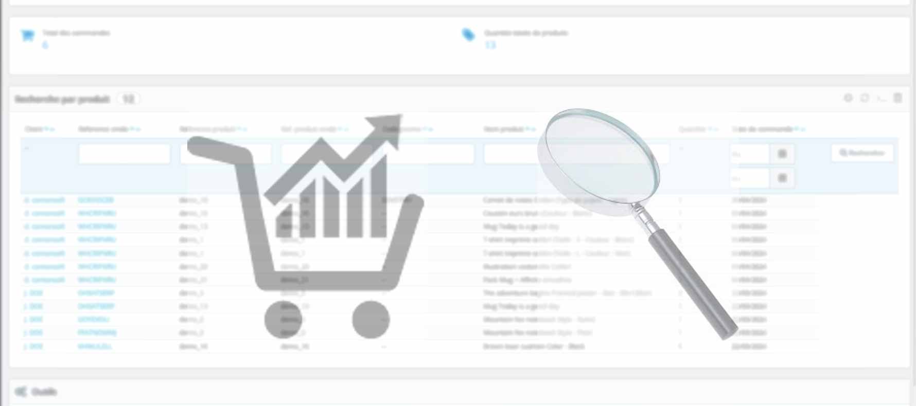 Elle apporte également une solution à une problématique commune rencontrée par de nombreux commerçants. En effet cet outil statistique permet de mesurer toutes sortes de statistiques sur les commandes. Entre autre, l’impact de campagnes promotionnelles (un ou plusieurs codes promos) ou la liste des commandes concernées par une référence produit ou un nom de produit spécifique.
